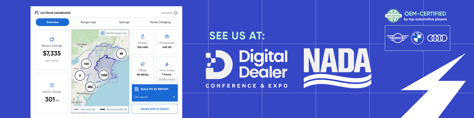 Lectrium helps automotive dealerships in the US turn their online electrified vehicle shoppers into informed, confident buyers with interactive tools that answer questions around range, charging, affordability, and sustainability right on their websites. Their EV merchandising tools are trusted by 420+ dealers in 38 states and certified by four major global car manufacturers.