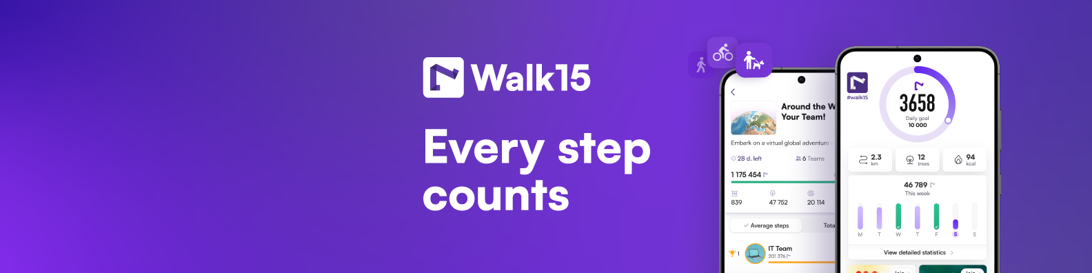 It enables companies and organizations to engage their audiences through activity challenges, connecting them to communities while promoting well-being and supporting environmental and social responsibility efforts. With over 1.1M app users and 2000 business clients, Walk15 creates positive impact every day.